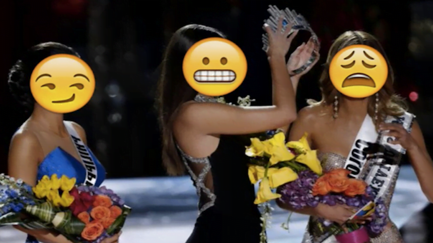 El presentador estadounidense Steve Harvey, en la pasada edición del Miss Universo cometió un grandísimo error al nombrar como ganadora a Miss Colombia para luego retractarse después de haberle sido otorgada la corona y nombrar a Filipinas como la verdadera ganadora del certamen.