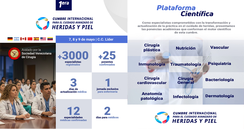 La cita tendrá lugar los días 7, 8 y 9 de mayo en el Centro Comercial Líder, en Caracas, donde un total de 25 ponentes de trayectoria global compartirán conocimientos y experiencias orientadas a optimizar el abordaje de lesiones complejas.