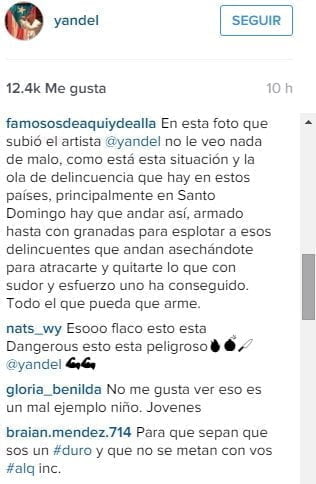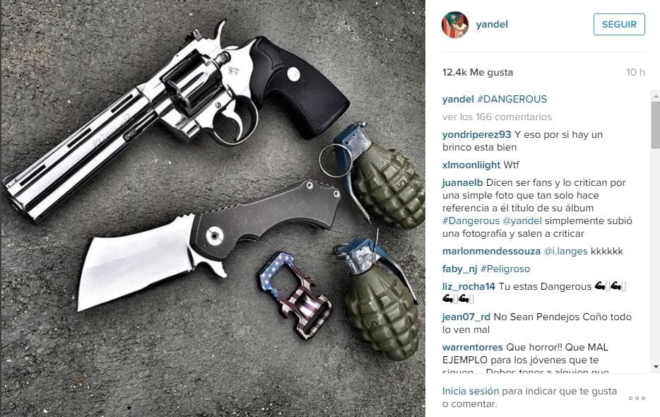 El artista publicó en su Instagram una foto donde muestra dos granadas, una pistola y otros objetos que se relacionan con violencia. Yandel fue criticado por muchos de sus seguidores donde mostraron repudio a la fotografía.