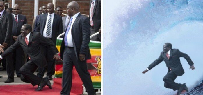 Estamos conscientes de que Robert Mugabe es un señor de 90 años y que es de muy mal gusto burlarse de personas mayores. Pero vamos a estar claros en una broma, este pana ha matado a la cantidad de gente que ha querido y se ha hecho rico a costillas de su propia gente. Lo primero que hicieron los guardaespaldas de Mugabe fue tomar las cámaras de los reportero gráficos que estaban en el lugar y hacerle borrar la evidencia de que se cayó, pero ya era muy tarde ya el video y la foto andaba dando vueltas en las redes sociales antes de que pudieran hacer algo al respecto.