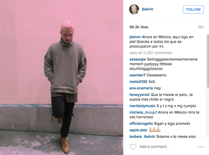 Hasta el día de hoy Balvin, todavía sigue publicando mensajes en Instagram y no ha recibido ningún bajón.