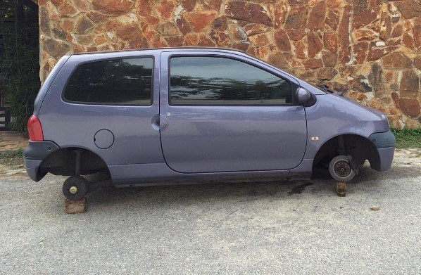 “Buenos días Venezuela. Así amaneció mi carro, a quienes robaron los cuatros cauchos y cuatro rines no los deseo mal, ya es bastante triste y miserable una vida robando cauchos a un Twingo en la noche. No conozco lo que es vivir en este país un solo día sin pasar una arrechera. PD: Si leen esto y viven en El Hatillo, bueno, ya saben que esto puede pasar, seguramente esto sucede 1.267 veces a la semana en Venezuela y no estoy enterado porque no me había pasado a mí”, escribió Varela en su cuenta de Instagram.