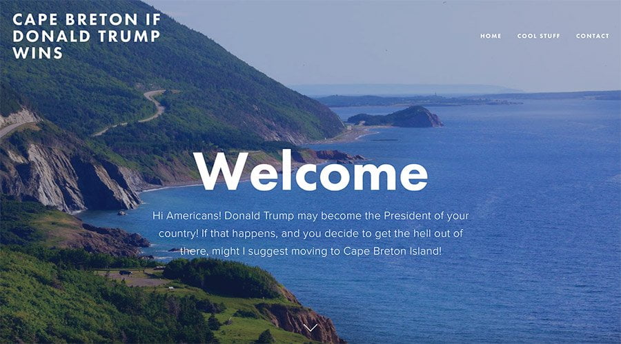 ¡Hola estadounidenses! Donald Trump puede ser el presidente de su país. Si eso ocurrre, y quieren irse al demonio de allí, les sugiero mudarse a la isla de Cape Breton (Cabo Bretón)”, dice la invitación con un paradisíaco fondo de sus costas.