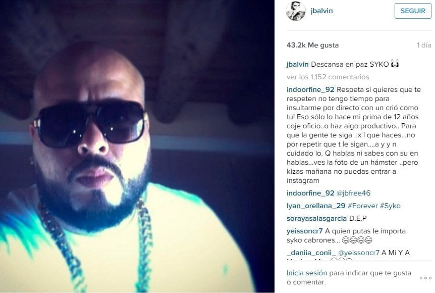 Otro de los famosos que tambien expresaron la perdida fue el colombiano J Balvin quien lamento la perdida del compositor Syko.
