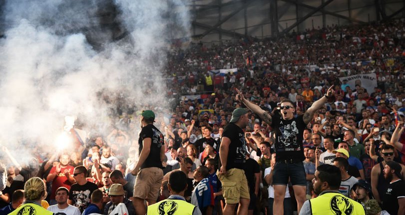 El pasado sábado 11 de Junio en la ciudad de Marsella, previo al debut de las selecciones de Rusia e Inglaterra a la presente “Eurocopa Francia 2016”, los enardecidos fanáticos de ambas escuadras generaron una situación de caos total en las adyacencias del estadio Velodrome, donde a golpes y utilizando toda clase de objetos contundentes estos grupos radicales protagonizaron una batalla épica que dejo un saldo de 35 heridos, entre ellos varios casos en estado de gravedad. Los disturbios cesaron con la intervención de cientos efectivos policiales, dándole paso al posterior inicio del Partido que termina con un empate 1-1 poco convincente para las hinchadas que buscaron el desempate por medio de otra revuelta; esta vez en las tribunas del estadio.