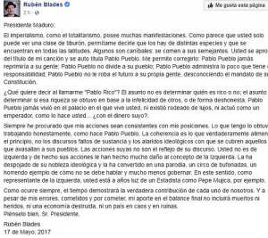 zigmaz- respuesta de ruben blades a maduro Last updated: 18 mayo, 2017 11:41 am By Redacción ZigmaZ Published 18 mayo, 2017 Share Las imágenes que aparecen en este artículo son de referencia y pertenecen a su autor Déjanos tus comentarios