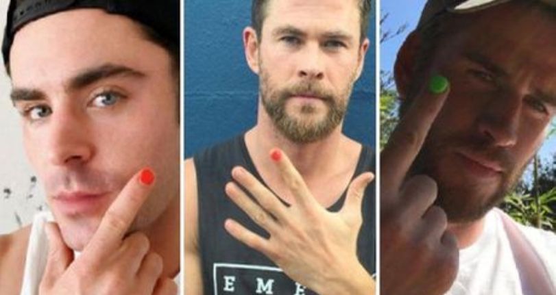 Fotografías de conocidos actores con una sola uña pintada están circulando en Facebook e Instagram. Zac Efron, Chris Hemsworth y…