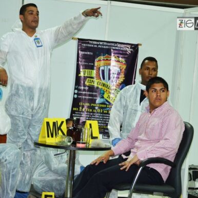 En varios de los stands de la Expo Criminalística 2015 estaban algunas escenas de crimen recreadas, unas con maniquís y otras con forenses, víctimas, evidencias y demás; se mostraba como los funcionarios de este cuerpo marcaban en territorio con cinta amarilla para alejar a los civiles del lugar en cuestión y cómo hacían ellos para saber si habían pruebas colocándole unas letras o números. Hay varias divisiones que se encargan de esto, como la de planimetría que realiza en el programa Autocad los diferentes planos, la división de homicidios, balística, forense, por mencionar algunas.