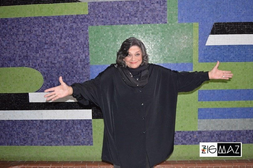Soledad Bravo en el mural de la Biblioteca UCV en el conversatorio